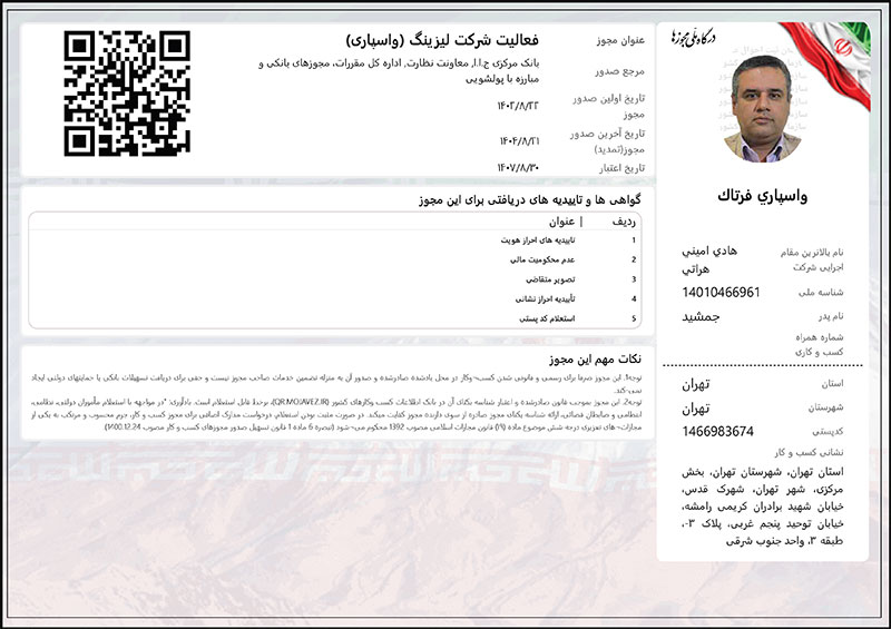 شرکت واسپاری آینده روشن میهن (سهامی خاص) در تاریخ 1400/08/08 تحت شماره 585808 در اداره کل ثبت شرکت ها و موسسات غیر تجاری استان تهران به ثبت رسیده است.